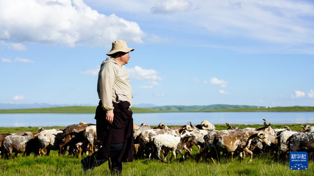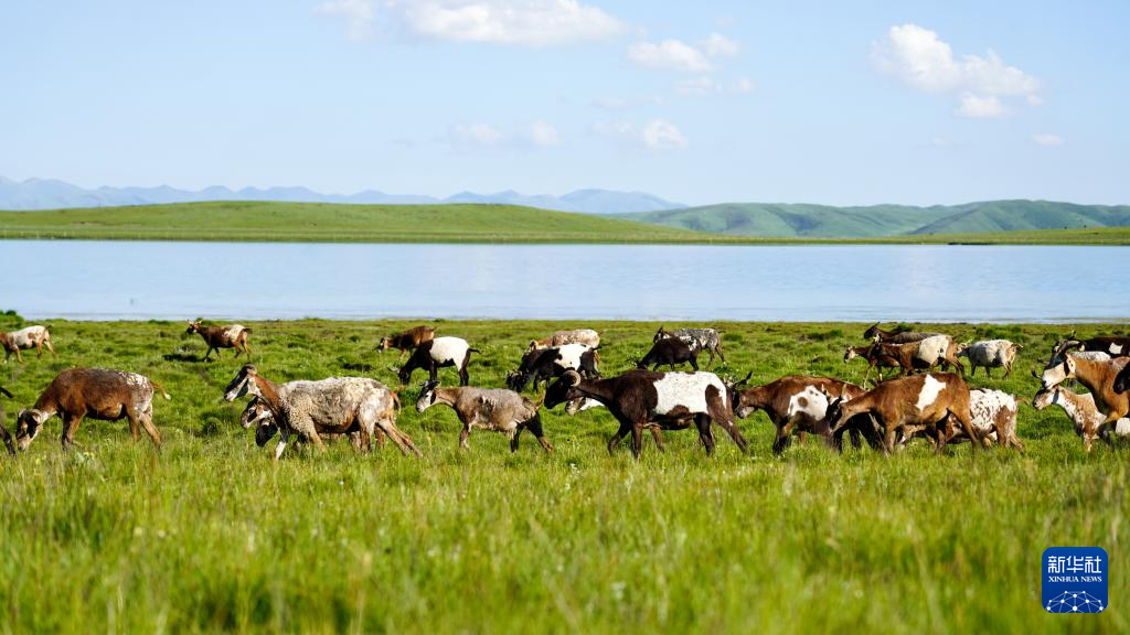 夏日,青海省黃南藏族自治州澤庫縣境內水草豐饒,草原、藍天、牛羊構成別致的美景。澤庫縣平均海拔3700米,2022年入選全國草原畜牧業轉型升級試點縣。