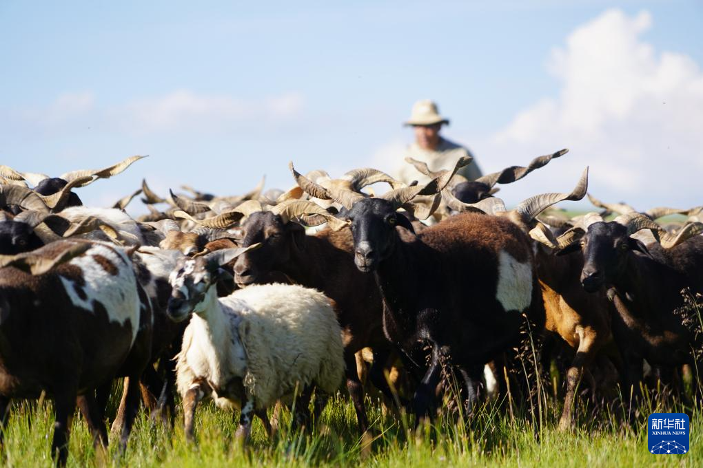 7月30日,在青海省澤庫縣的草原上,羊群在吃草。新華社記者 王艷 攝