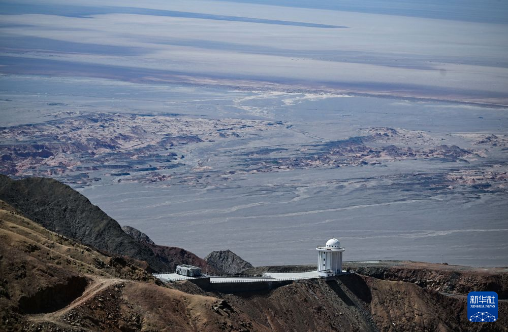 這是7月29日在冷湖鎮賽什騰山拍攝的中國科學技術大學和中國科學院紫金山天文臺聯合研制的大視場光學成像望遠鏡——墨子巡天望遠鏡(無人機照片)。 新華社記者 張龍 攝