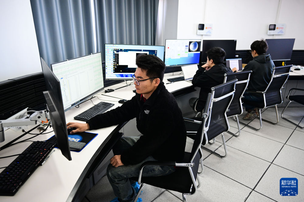 7月29日,由中國科學院國家天文臺實施的用于太陽磁場精確測量的中紅外觀測系統AIMS項目科研人員在工作。 新華社記者 張龍 攝