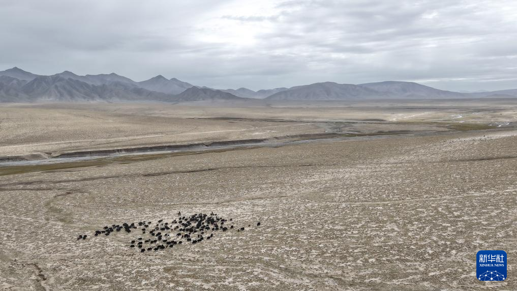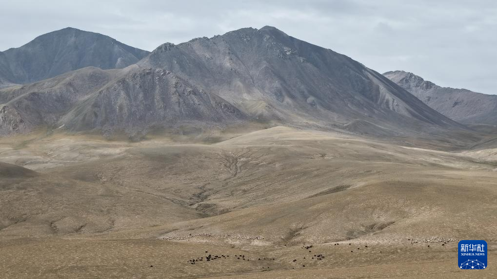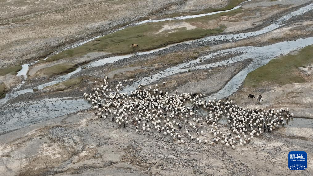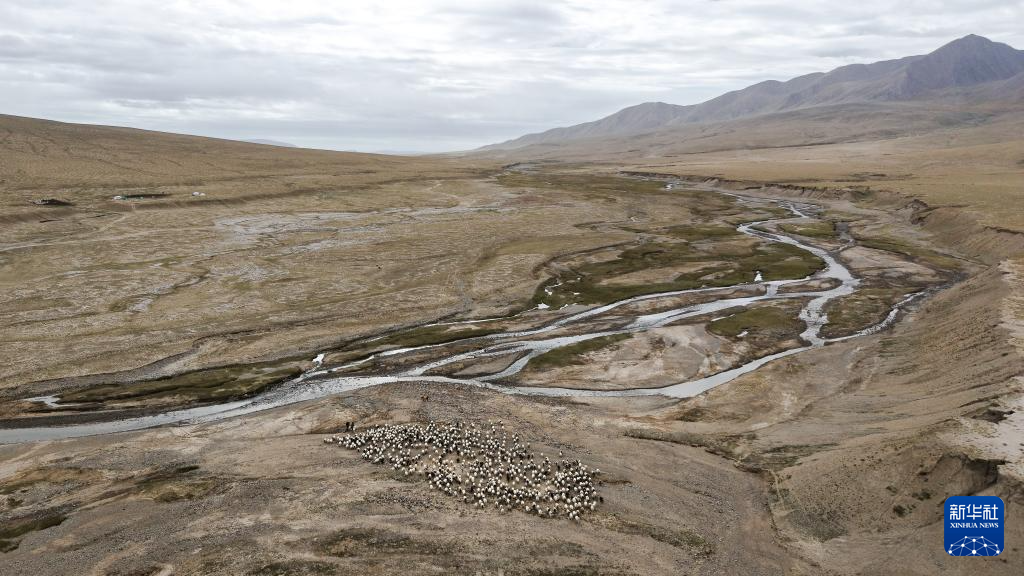 9月9日,在青海省海西蒙古族藏族自治州都蘭縣,牧民趕著牛羊從秋季草場出發,前往冬季草場(無人機照片)。新華社記者 齊芷玥 攝
