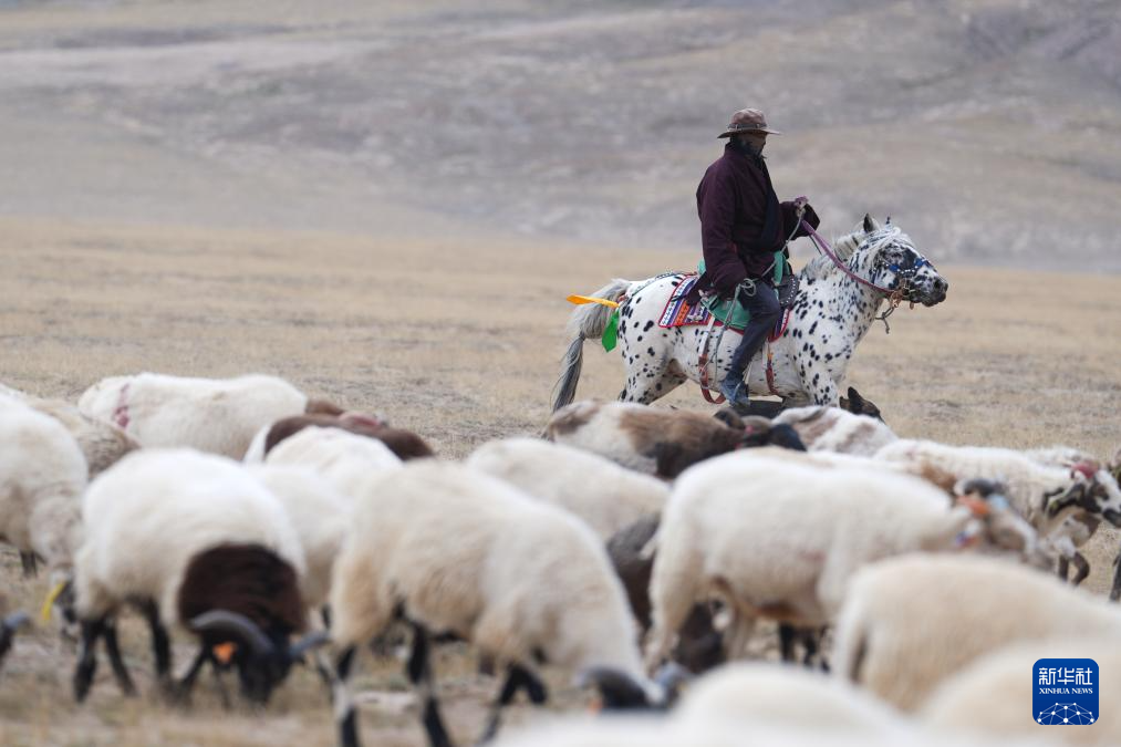 9月9日,在青海省海西蒙古族藏族自治州都蘭縣,一名牧民在轉場途中。新華社記者 齊芷玥 攝