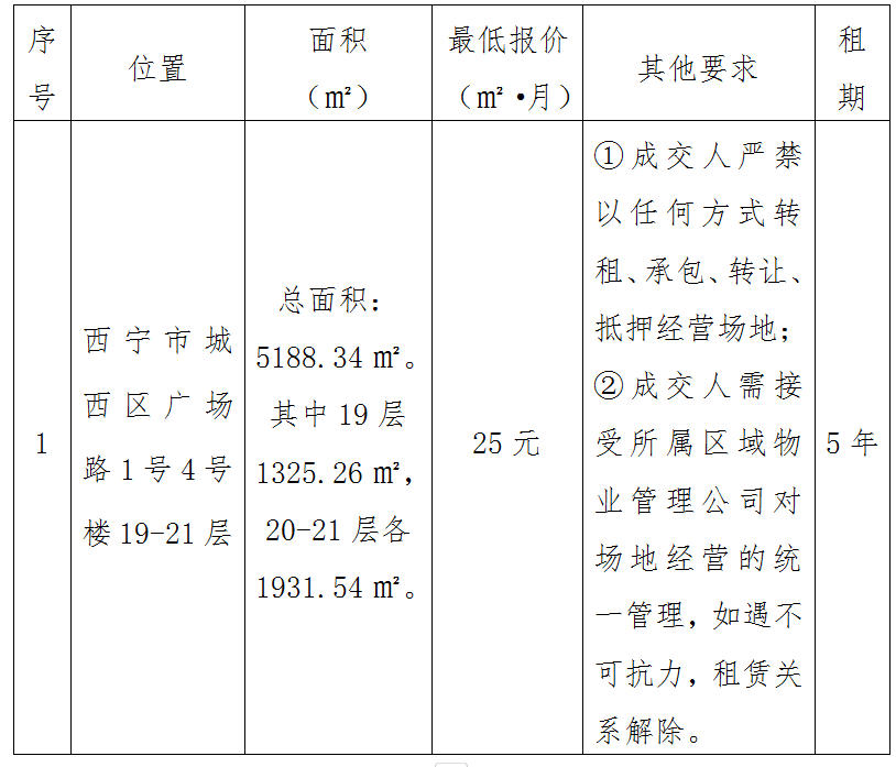 新華通訊社青海分社對青海省西寧市城西區廣場路1號4號樓19-21層商業用房出租項目進行競爭性磋商招租,茲邀請符合本次磋商條件的承租方參加出租項目競價。